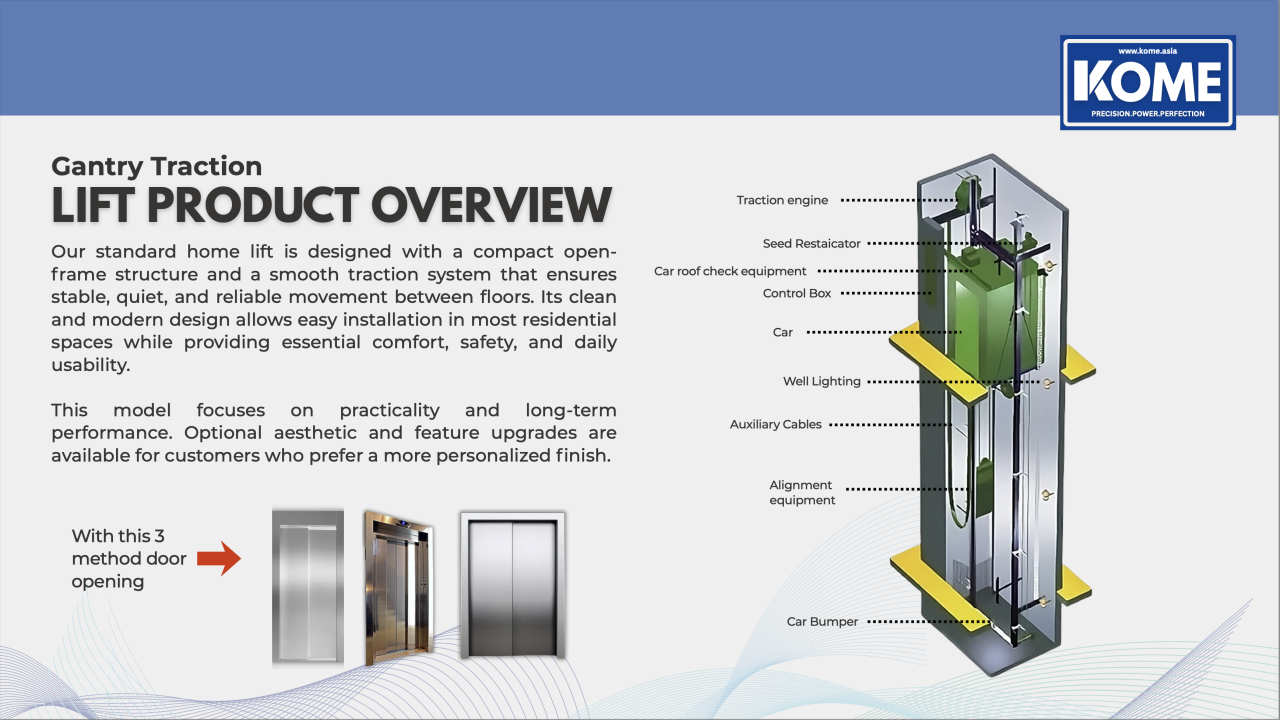 Experience the ultimate in safety and silence with our German-engineered gearless traction technology and high-strength steel belts. Backed by 10+ years of expertise, we bring modern elegance and reliable vertical mobility to your residential space.